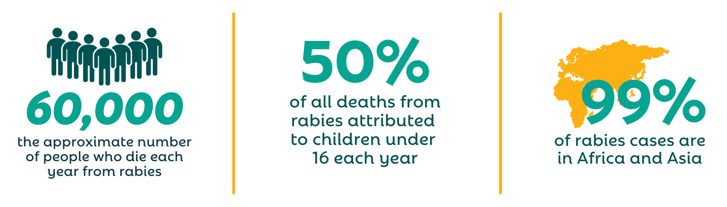 Major health organizations including the Centers for Disease Control and Prevention, the United States Department of Agriculture (USDA), World Health Organization (WHO), the World Organization for Animal Health (WOAH), and the Food and Agriculture Organization of the United Nations (FAO) are working together to eliminate rabies deaths in people by 2030. We have the vaccines, medicines, tools, and technologies to prevent people from dying from pet-mediated rabies. For a relatively low cost, it is possible to break the disease cycle and save lives.